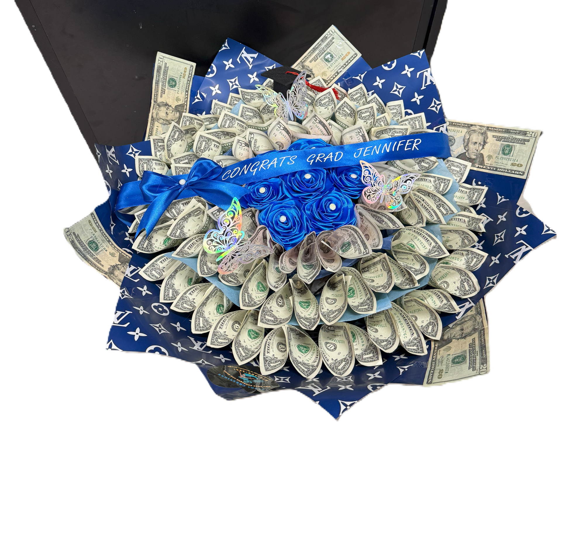 eternal satin ribbon handmade roses, personalized ribbon and the desired number of bills to make that special and successful graduate individual very happy.